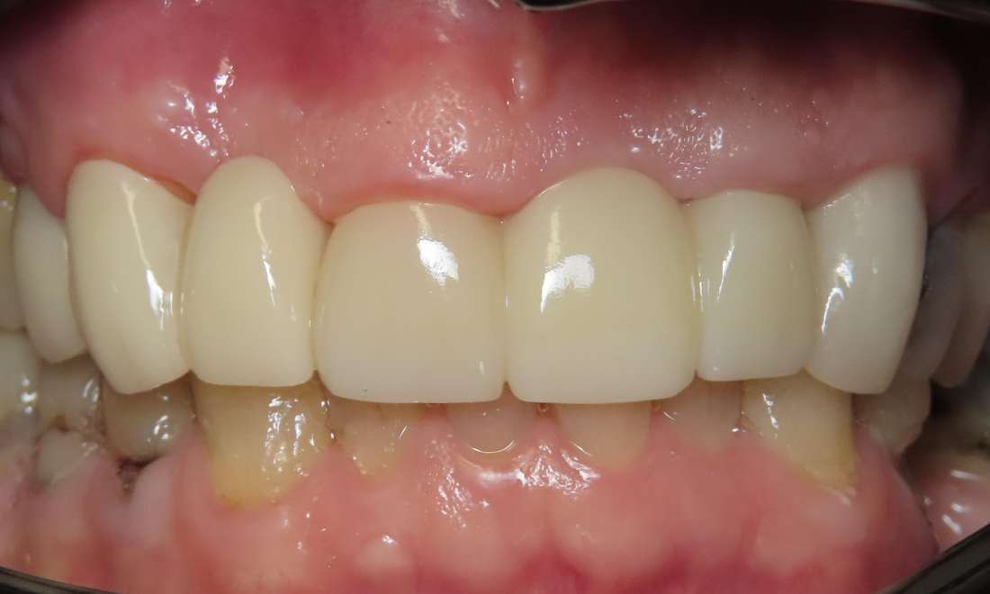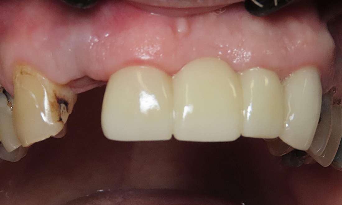 Our patient lost a front tooth, and we restored the area with a nice ceramic bridge to restore his smile. This was a relatively simple fix that made a huge difference in his confidence and function.